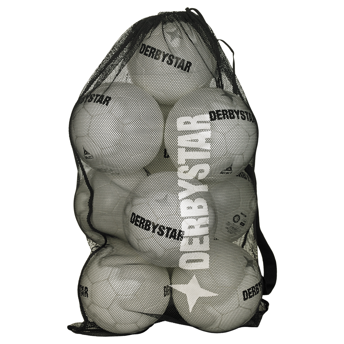 Strapazierfähiges Ballnetz für 3 oder 10 Bälle. Mit Kordelzug und Stopper.